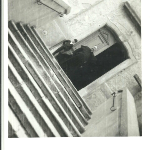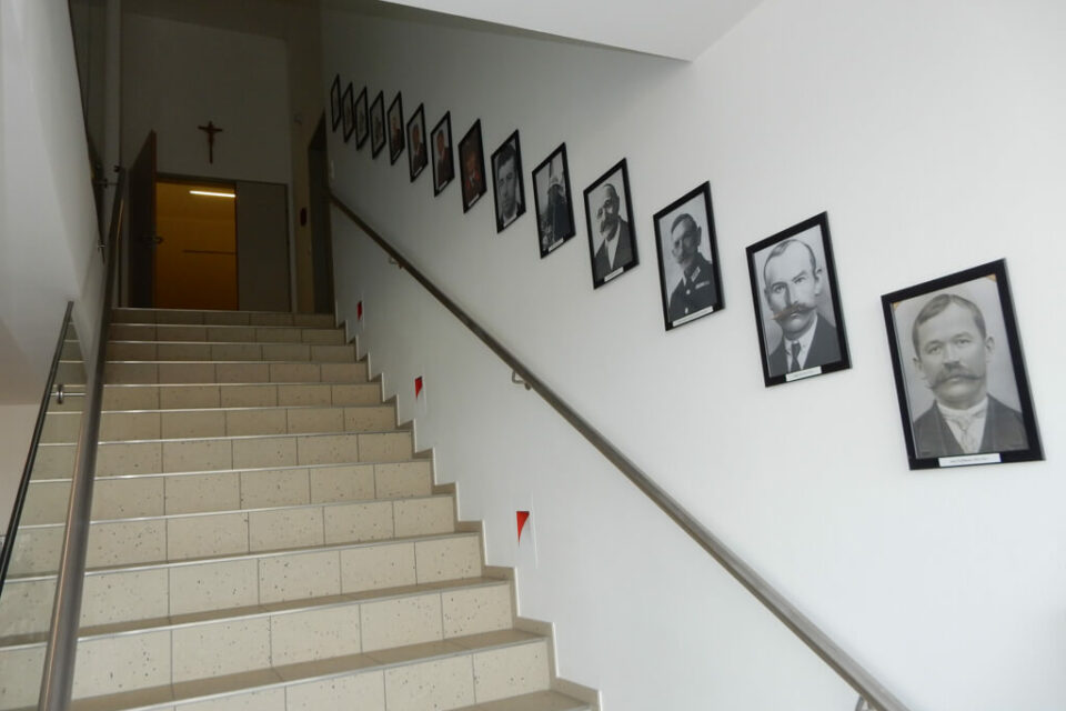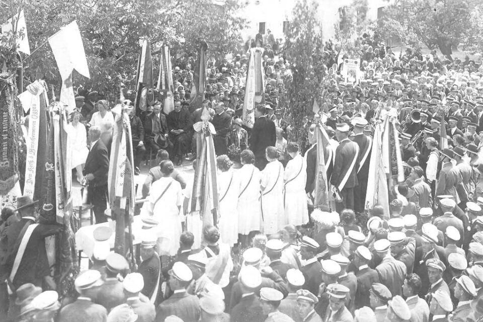 Die Fotos „Schulklasse der alten röm.-kath. Volksschule, 1921 und Schulklasse der alten röm.-kath. Volksschule mit Lehrer Weiss, 1949“ zeigen die Schüler der römisch-katholischen Volksschule.