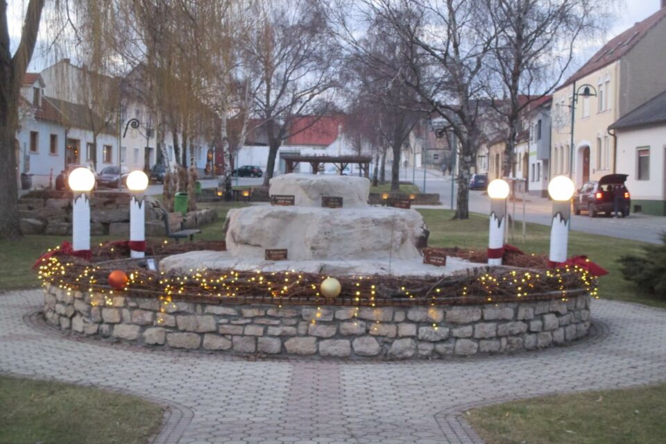 In der Advent- und Weihnachtszeit fungiert der Springbrunnen mit entsprechender Dekoration als großer Adventkranz mit Kerzen.